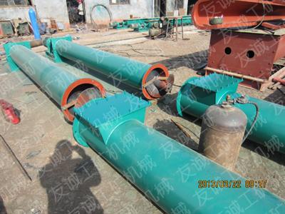 管式螺旋輸送機一般情況下用于傾斜角度的輸送,管式螺旋輸送機是利用旋轉(zhuǎn)的螺旋將被輸送的物料沿固定的機殼內(nèi)推移而進行輸送工作,頭部及尾部軸承移 殼體外,吊軸承采用滑動軸承設有防塵密封裝置,軸瓦一般采用粉末冶金,輸送水泥采用毛氈軸瓦,吊軸和螺旋軸采用滑塊連接。
